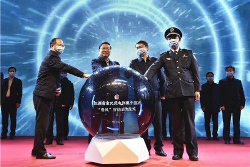 2月9日晚20時(shí),省委宣傳部、省公安廳在南昌市秋水廣場舉行江西省全民反電詐集中宣傳“春風(fēng)”行動(dòng)啟動(dòng)儀式。副省長、公安廳長秦義出席儀式并下達(dá)啟動(dòng)命令,儀式由省政府副秘書長吳龍強(qiáng)主持,公安部督導(dǎo)組成員、省委宣傳部副部長吳永明,南昌市委副書記、市政府黨組書記萬廣明出席儀式。省公安廳黨委委員、南昌市副市長、市公安局長萬秀奇,省公安廳黨委委員、副廳長、廳際聯(lián)席會(huì)議召集人胡滿松出席儀式并講話。江西省打擊治理電信網(wǎng)絡(luò)新型違法犯罪成員單位的負(fù)責(zé)同志、省公安廳在昌廳領(lǐng)導(dǎo)、廳直各單位主要負(fù)責(zé)人,南昌市委宣傳部、市委政法委、市檢、法主要負(fù)責(zé)人,中央和省市各大新聞媒體記者、南昌市干部群眾代表共400余人參加儀式。全省市縣兩級黨委宣傳部門、公安機(jī)關(guān)設(shè)立110個(gè)分會(huì)場,同步舉行“春風(fēng)”行動(dòng)啟動(dòng)儀式。