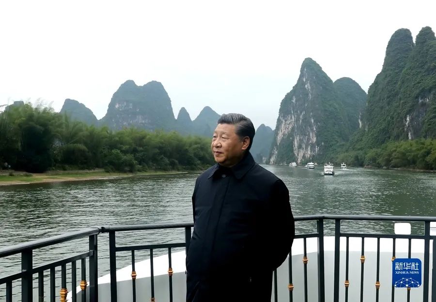2021年4月25日至27日,中共中央總書記、國家主席、中央軍委主席習(xí)近平在廣西考察。這是25日下午,習(xí)近平在桂林市陽朔縣,乘船考察漓江陽朔段。