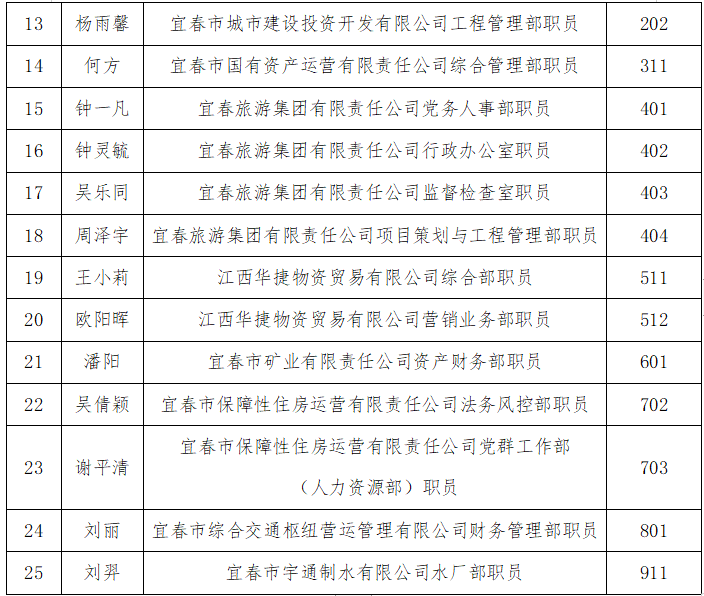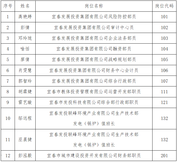 2022年宜春市國資委市屬國有企業(yè)招聘高校應(yīng)屆畢業(yè)生擬聘用人員公示